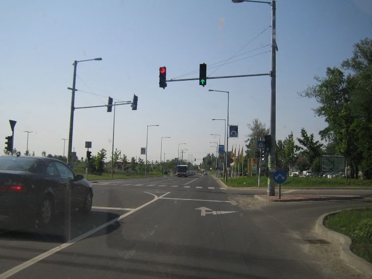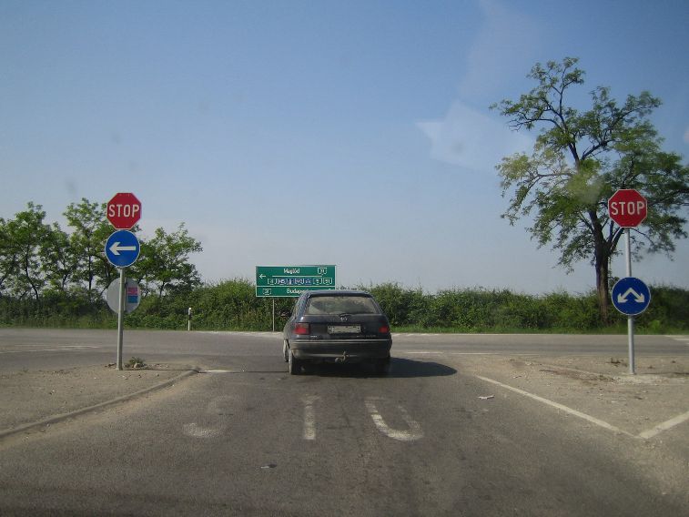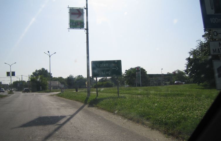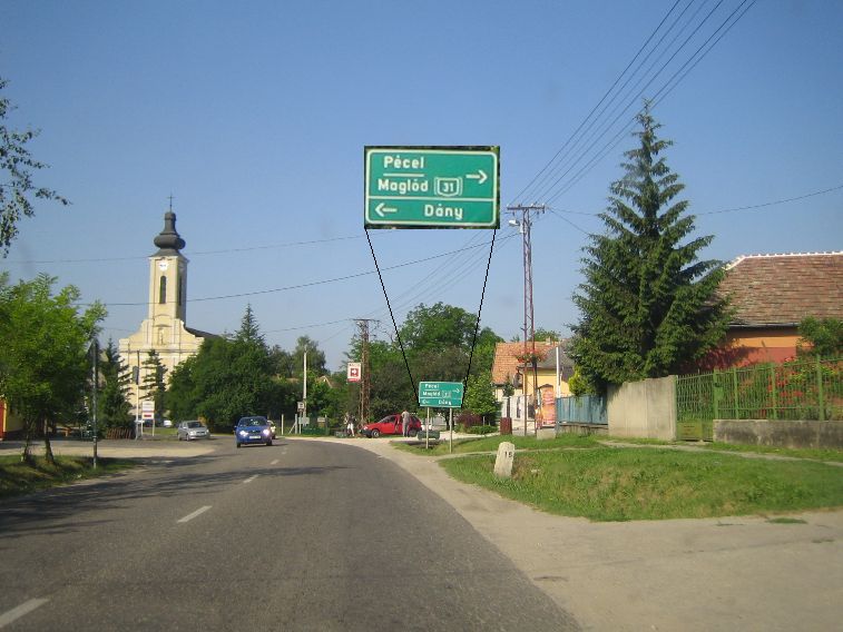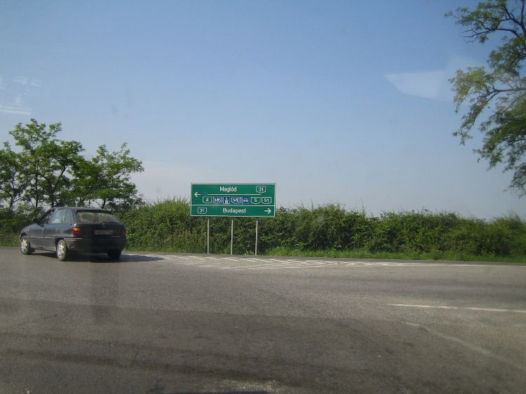 Za zákrutou križovatka. Tu treba odbočiť na Pécel a Maglód.