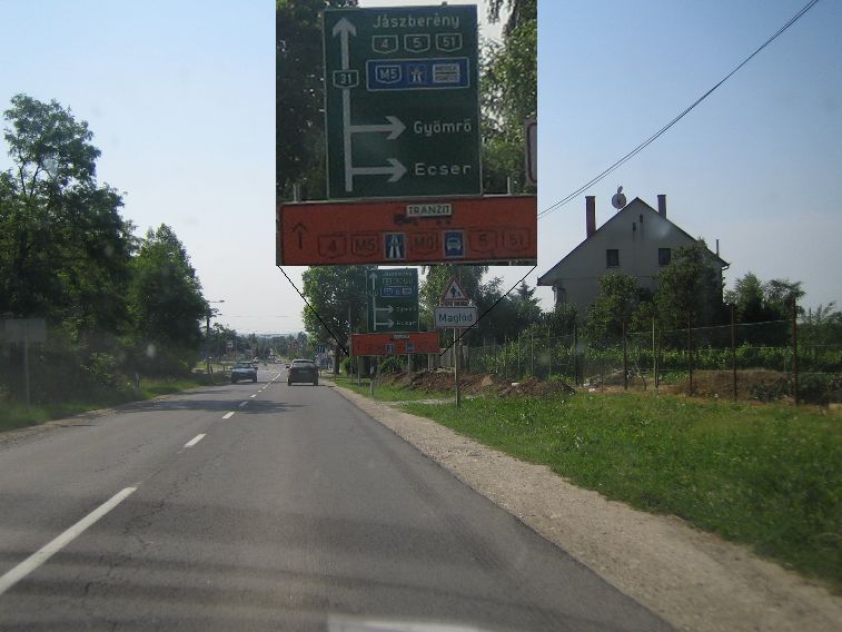 A cestu 31 treba opustiť tu, smerom na Ecser. To je kratšia cesta, ale je tam jeden zle označený chyták.